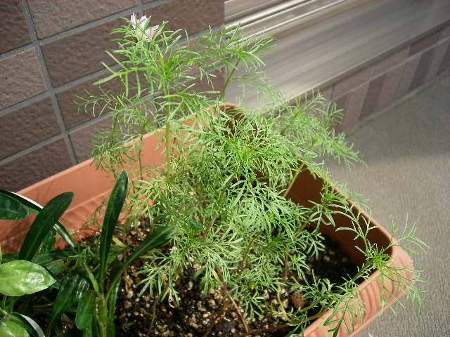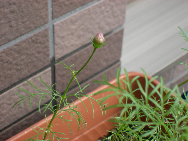チョウがサナギから出てくるように、ゆっくりと花開くのかと思っていましたが、弾けるような勢いで咲くようです。 咲いたコスモスを見て、娘も大喜びです。
