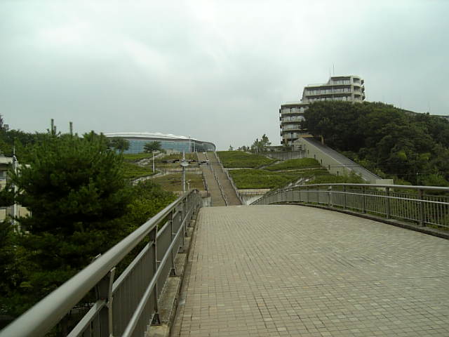 陸橋を渡ると、ロングな階段があります。
