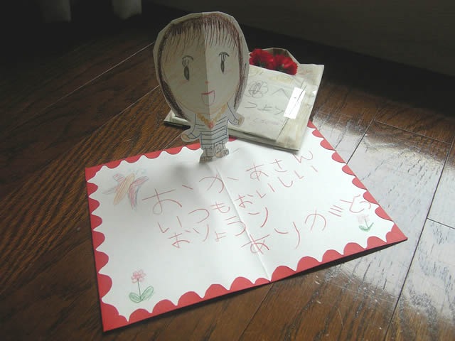 母の日に、娘から嫁へ送るためのカード作りを手伝ってあげました。