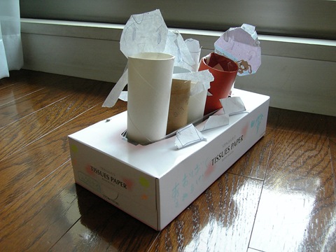 事の発端は、娘がティッシュの空き箱を使って作ったバスでした。