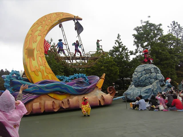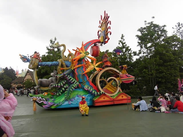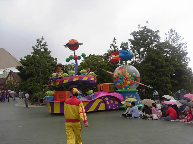 昼間のパレードです。雨が降ってきましたが、娘は夢中で見てました。