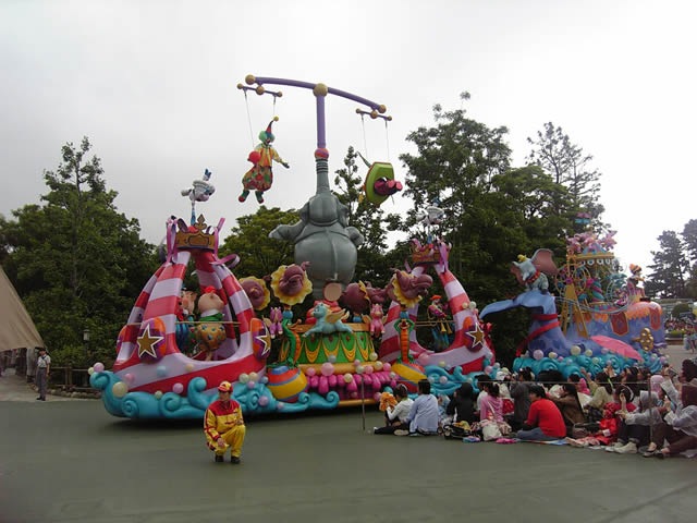 ところが、思ったより時間がかかり、ダンボに乗ってる最中にパレードが始まってしまいました。