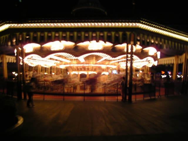 締めは、エレクトリカルパレードです。パレードが始まるまで、嫁に場所を取っておいてもらい、時間つぶしに、娘と私で待ち時間30分のダンボに並びました。