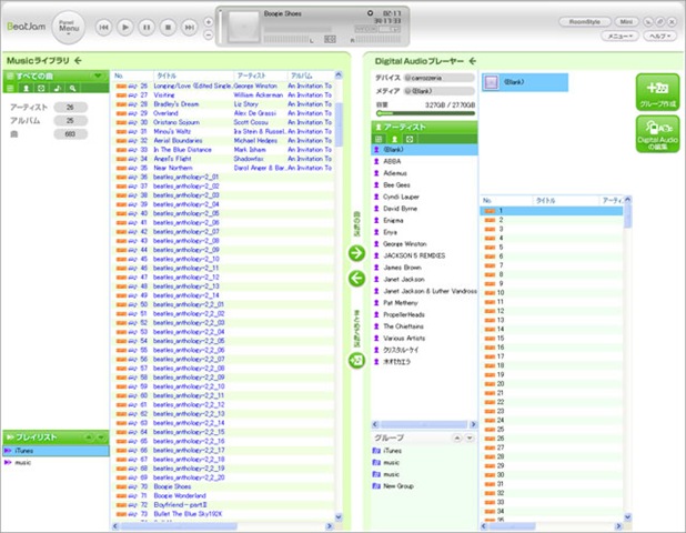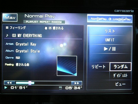 ナビのディスクドライブにCDを直接入れるもよし、NAVI*STUDIOにあるBeatJamからPC経由で入れるもよしといった感じで曲を放り込み、様々なスタイルで曲を聴くことができます。