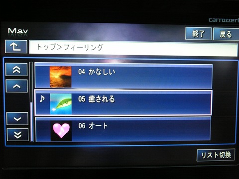 その他にも、気分に合わせた曲をリストアップしてくれるフィーリングプレイもあります。iPodみたいな感じでしょうか(持ってないので分かりませんが)。