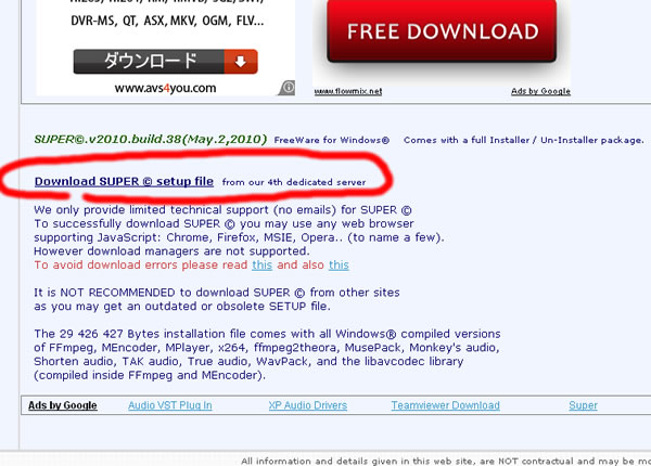 最後に開くページで「Download SUPER c setup file」(以下の画像参照)をクリックして、インストーラーを保存します。