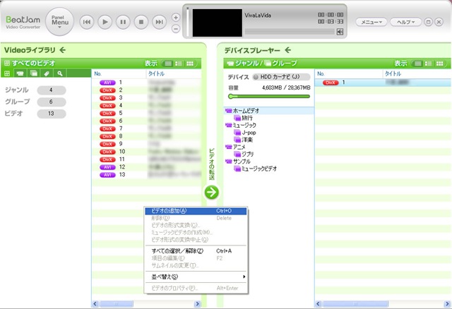 映像データは、BeatJam Video Converterで取り込んで、PCと接続したブレインユニットへ転送します。