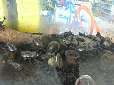 ざっと見た感じ30匹くらいはいると思うのですが、カブトムシがこんなにスシ詰めにされていると有り難味もイマイチですね。
