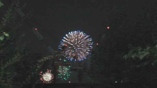 この場所からだと2箇所から上がる花火の片方しか見られないのは分かっていましたが、今回は2年前には無かった建築中の高層マンションが見えてしまって残念です。