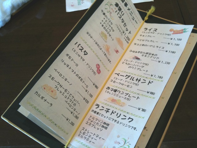 メニューはパステルタッチで可愛らしいです。身体に良さそうな食材の雰囲気を漂わせています。