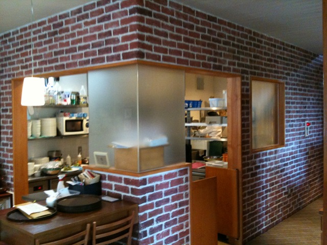 キッチンはレンガの壁で囲まれていて、これまた可愛らしいです。