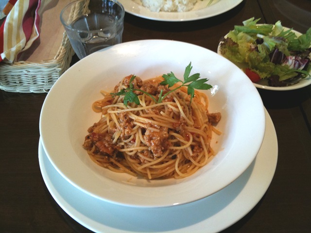 この日は「鶏ひき肉のタイ風パスタ」でした。