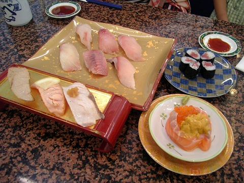 ナビで目星付けてたのですが、そこへ行き着くまでに我慢できず、適当にオイシそうな地元の回転寿司に入りました。