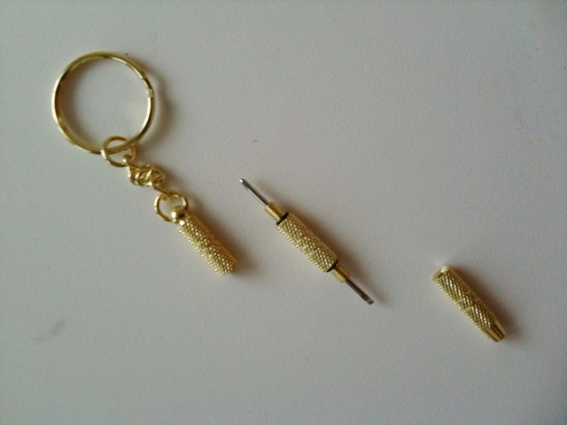 キーチェーンと本体、キャップに分離し、本体にはマイナスとプラスのドライバーが付いています。