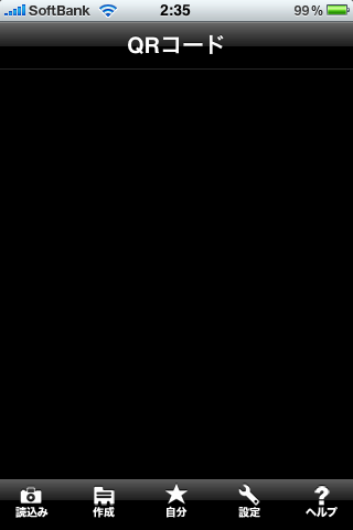 QRコードを読み込むには、カメラのマークを押して、撮影するでカメラを起動します。