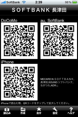 アドレス帳情報のQRコードの作成もできます。