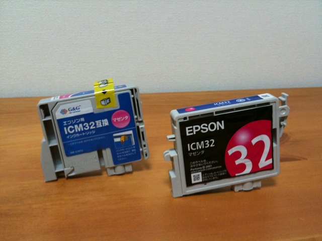 「そろそろもういいか」と思っていたところ、ちょうどマゼンダが切れた事もあり、G&G社のEPSON用ICN32互換インクを買ってみました。