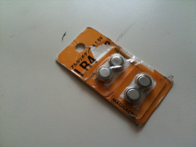 電池はボタン電池ですが、前回のものの予備として、これまた100円ショップで買った電池が使えるのでラッキーでした。