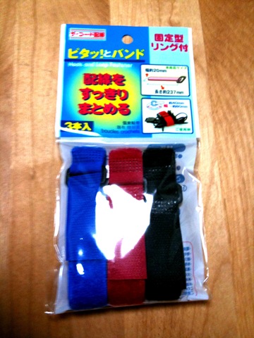 コードをまとめるマジックテープのバンドですが、これでリストケースやカバンのスリングに付けて、天気の良い日は移動しながら充電できます。