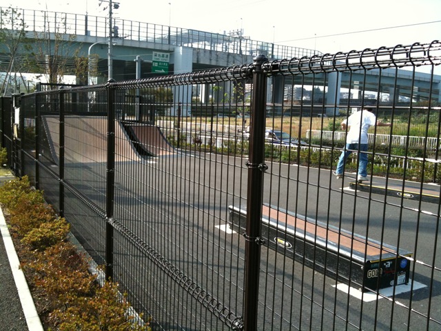 パークは柵で完全に囲まれていて、スケボーが許されるのは柵内のみです。