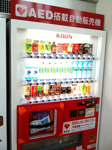 最近、いろんなところでAEDを見かけますが、AED付きの自動販売機は初めて見ました。
