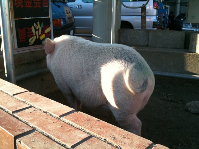 オマケ写真ですが、このMichiのすぐ近くの交差点にあるガソリンスタンドで、なんとブタが飼われていました。