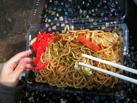 お祭りといえば、お昼は焼きそばです。当初200円でしたが、13時を過ぎたとたんに食べ物は軒並み半額になっていきました。
