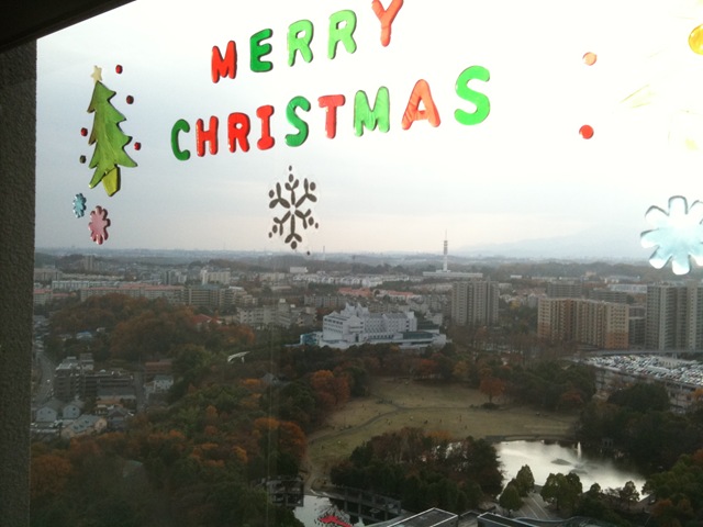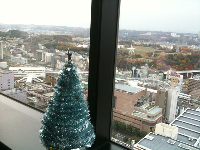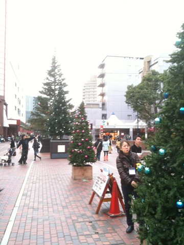 ベネッセタワーが面するサンリオピューロランドへの通りも、クリスマスカラーで彩られていました。