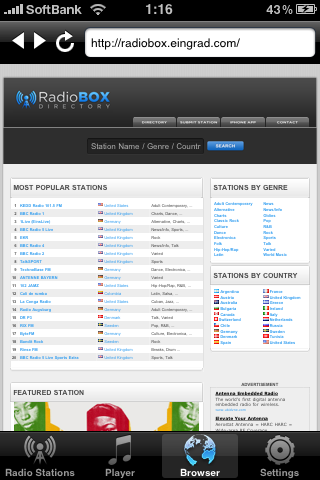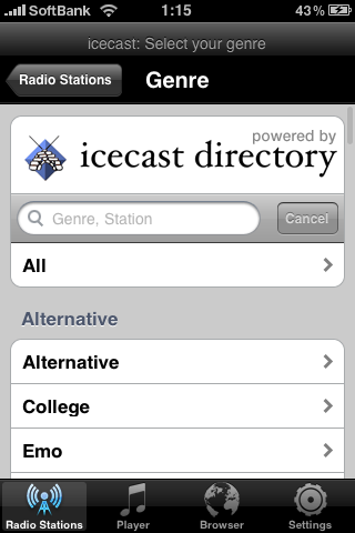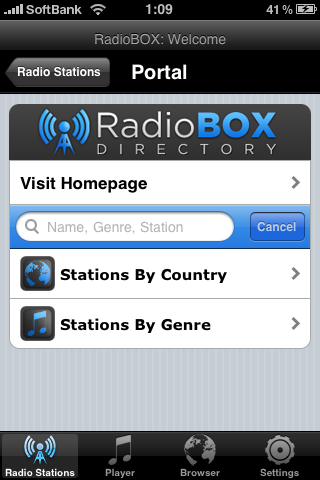 RadioBOX、SHOUTcast、icecastという3つのポータルから局を選ぶことができます。