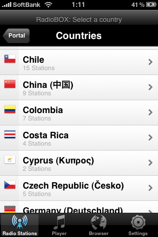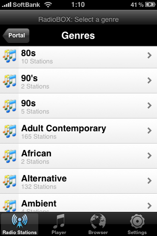 例えば、RadioBoxですと、国別、ジャンル別で局が選べます。