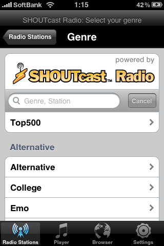 iPhoneの機能的にはFMラジオを受信できるという噂がありますが、持っている曲に飽きたら、先ずは115円で気軽にネットラジオに興じてみるのもいいかもしれません。