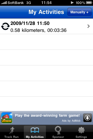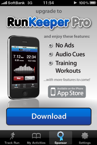 RunKeeperは無料版と有料版があり、広告が入ること以外に機能的な違いは無いそうです。