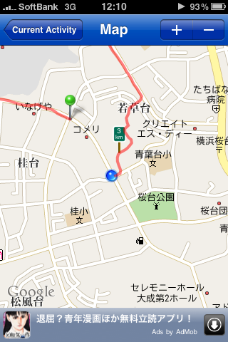 時速、総距離、経過時間を計測することができ、地図で経路と現在地を表示することができるスグレモノです。