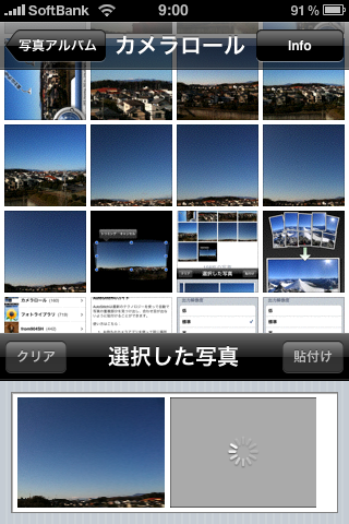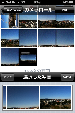 全部選んだら、貼付けボタンを押してパノラマ写真作成を開始します。