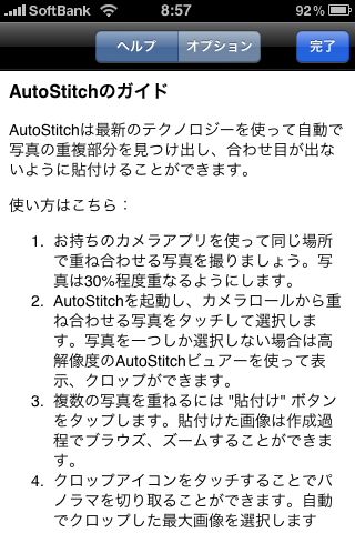 ヘルプでは、パノラマ写真を作る上での撮影方法など参考になることが書かれています。