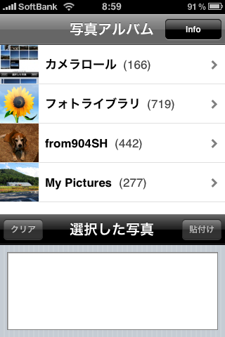 また、リストの上のクリアボタンをタップすると、リストに選んだ写真を全部解除できます。