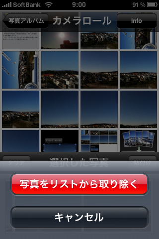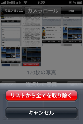 間違えたら、リストの写真をタップすると、リストから1枚だけ解除できます。
