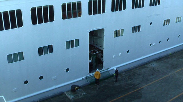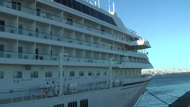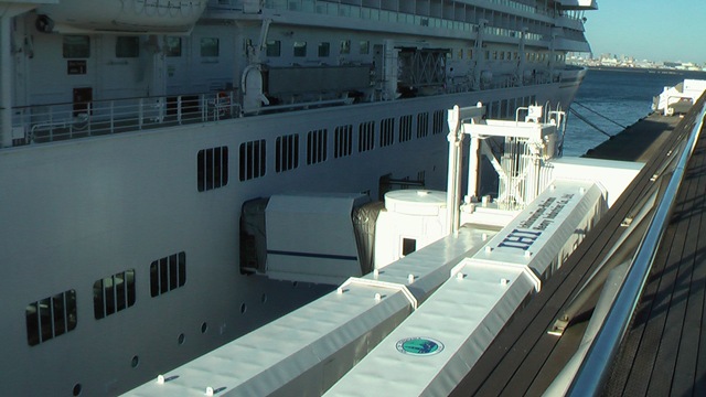 全長240.8mの巨体は日本船籍で最大の船(2010年1月)らしく、大桟橋が普通の桟橋に見えるくらい巨大な船です。