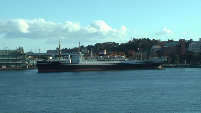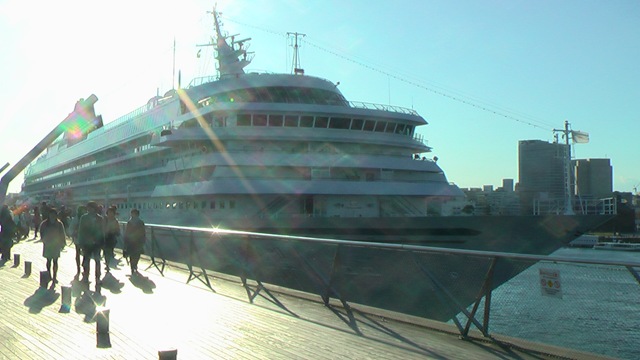 飛鳥IIと比べると、反対側に停泊していた船や、氷川丸がオモチャに見えてしまいます。