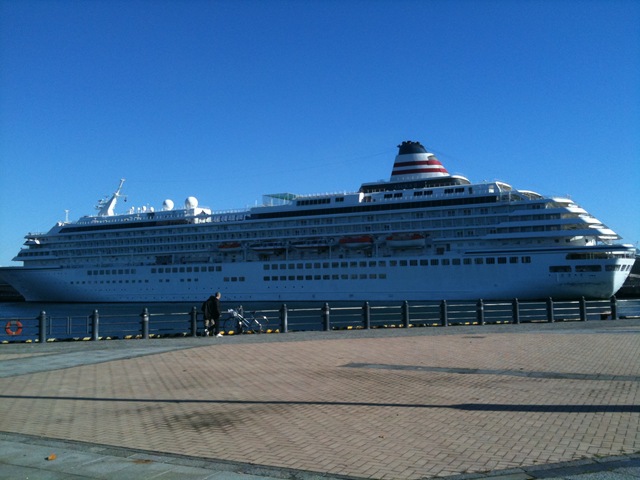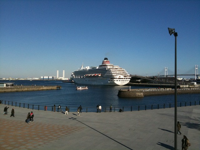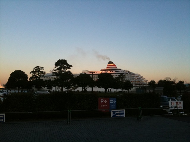 大桟橋は、たまに家族で遊びに行くスポットなのですが、12/20はたまたま飛鳥IIが寄港していたようです。