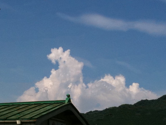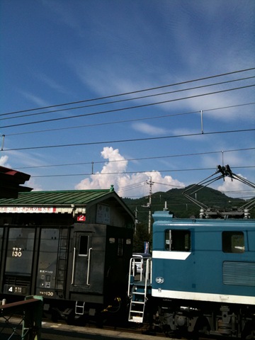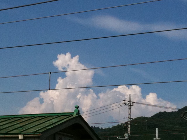 オマケです。入道雲がキレイだったので写真を撮ったのですが、電車の電線が邪魔でした。