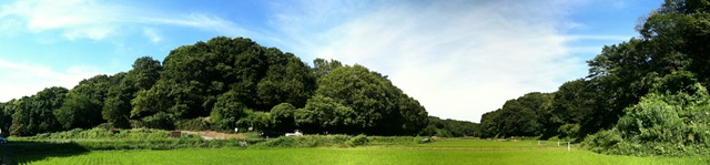 autostichでパノラマ写真を作ってみました。180度くらい見渡していますが、奥へ行けば昔の田園風景を見渡すように楽しむこともできます。