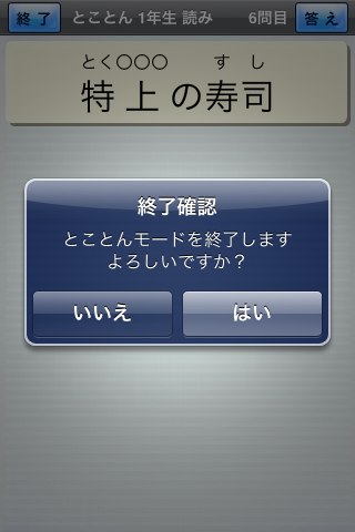 読み問題は、○部分を平仮名で穴埋めします。1字ずつ認識させますが、サクサク認識するので気になりません。