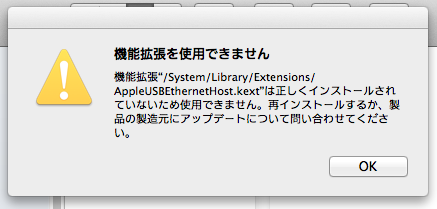 これで、iTunes11.1をMacにアップデートした際にインストールされた「AppleUSBEthernetHost.kext」は古いもので置き換え完了になります。