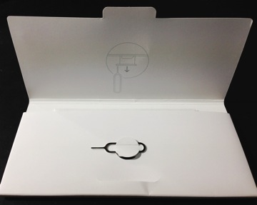 パッケージに付属(写真上のクリップみたいな針金)していた、SIM取り出しツールを使います。