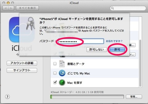 iCloudキーチェーンについては、私は他にもMacやiPhone5があるので、「ほかのデバイスから承認」にしました。