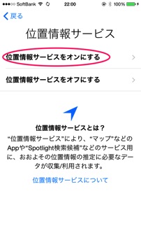 位置情報サービスのオンオフを聞かれます。私はオンにしました。