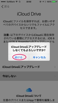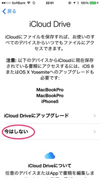 iCloud Driveというサービスの利用を聞かれるようになりました。GoogleDriveのようなクラウドサービスです。