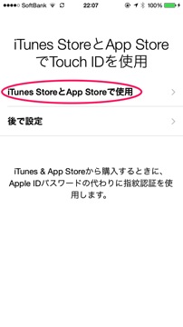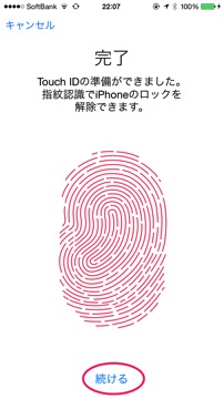 TouchID(指紋認証)の登録です。何度もタッチして離すを繰り返すことになります。いろんな方向で撮っておくと、精度が上がると言う都市伝説もあります。