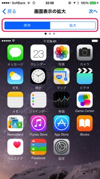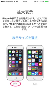 画面の拡大表示について決めます。せっかく大きい画面なので、広く使いたかった私は「標準」を選びました。
